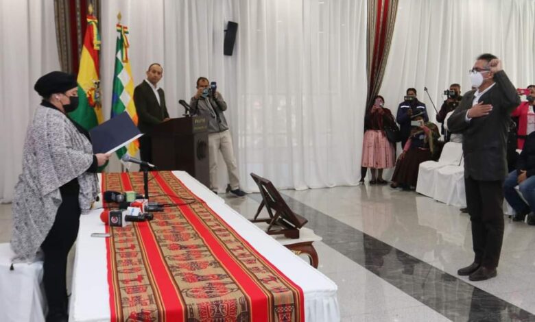 sabado 14 de mayo 2022.- La mañana de este sábado la Ministra de la Presidencia María Nela Prada, tomó juramento en el cargo de Viceministro de Coordinación Gubernamental a Gustavo Torrico, en reemplazó de Freddy Bobaryn.