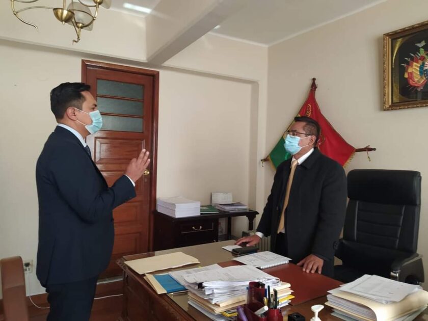 Este lunes 16 de mayo el Gerente General de la Caja Nacional de Salud , José Luis Martínez, posesióno al nuevo Gerente Regional de La Paz, cargo que recayó en el médico Rubén Mamani Condori, en sustitución de Max Gonzáles, se desconoce hasta el momento la situación de abogada que proceso a Evo y Luchó si se mantendrá en el cargo así como de funcionararios pititas de las unidades administrativas y de comúnicacion.