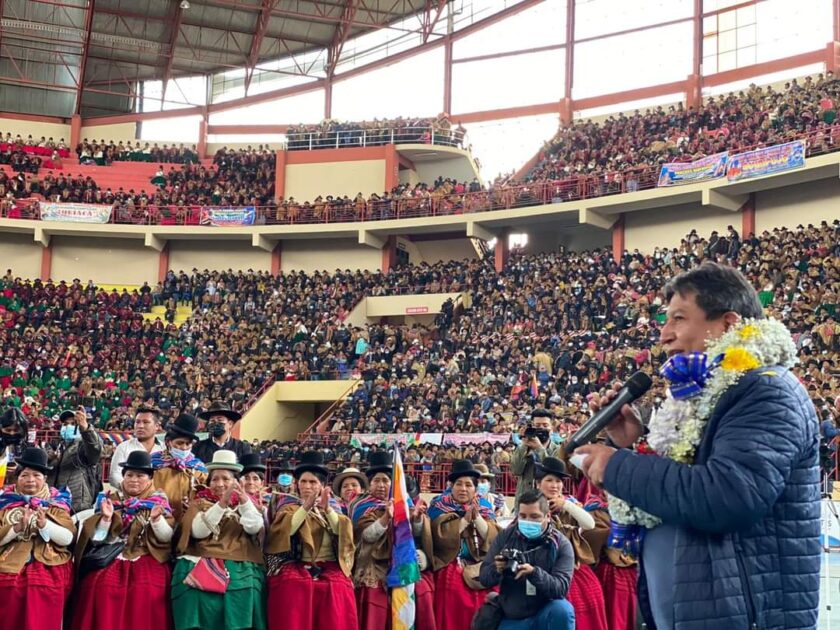 El Vicepresidente del Estado Plurinacional de Bolivia, David Choquehuanca Céspedes, junto al Presidente Luis Arce, asistió al inicio del XXV Magno Congreso Ordinario de la Federación Departamental Única de Trabajadores Campesinos de La Paz “Tupaj Katari”, efectuado en el Coliseo Héroes de Octubre, la mañana de este sábado.
