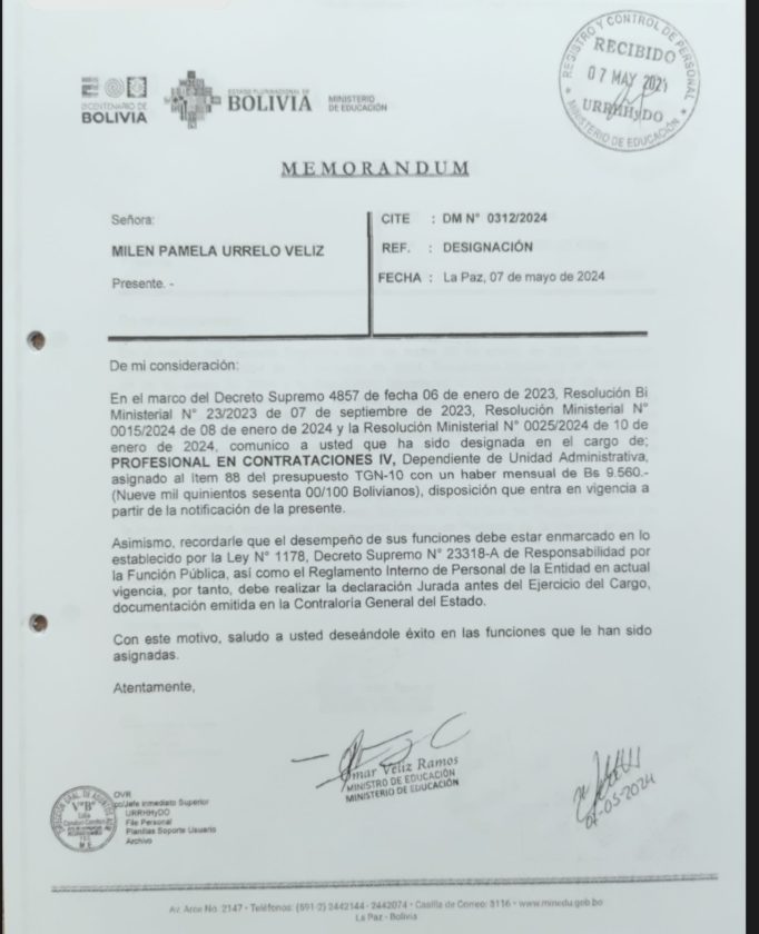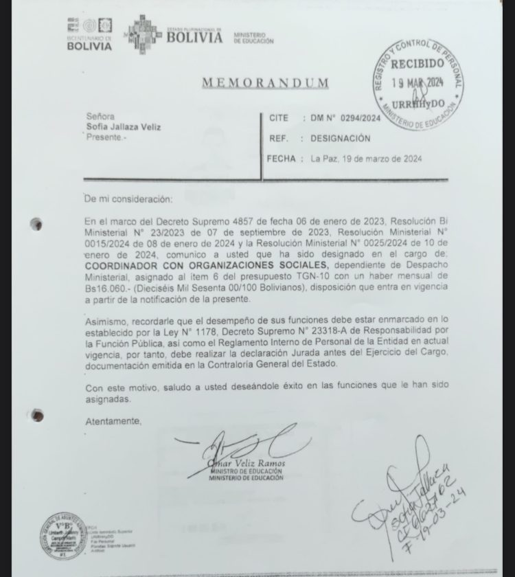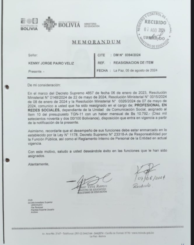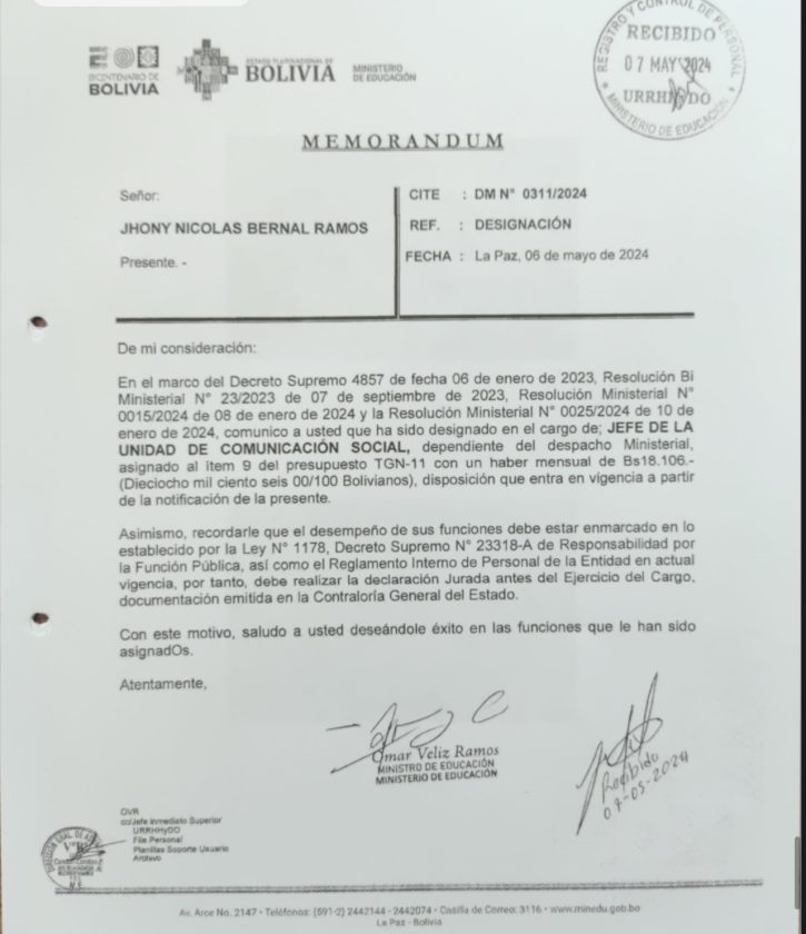 20 de enero 2025.- En las últimas horas se confirmó una denuncia en el Viceministerio de Transparencia contra el actual Ministro de Educación Omar Veliz , por nepotismo.