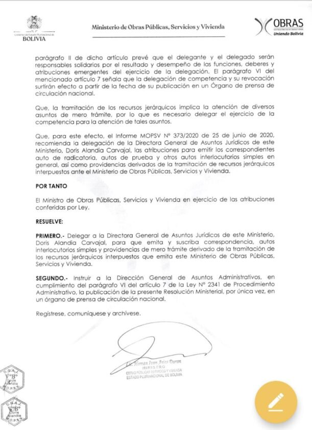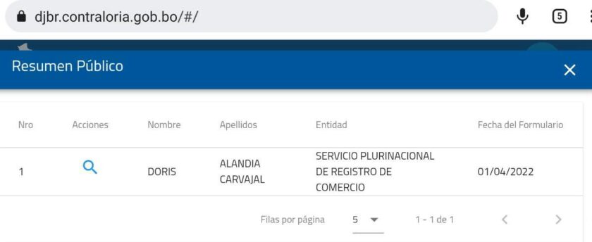Miércoles 11 mayo 2022 .- Según los documentos que accedió Sinmordazadigital del periodista Horacio Martínez, la señora Doris Alandia Carvajal, fue incorporada en el Servicio Plurinacional de Registro de Comercio, SEPREC, en fecha 01 del abril del 2022, cómo indica su declaración jurada ante la Contraloría ,la misma persona que era Directora Jurídica del Ministerio de Obras Públicas en la gestión de Iván Arias , en el régimen de Jeanine Añez.