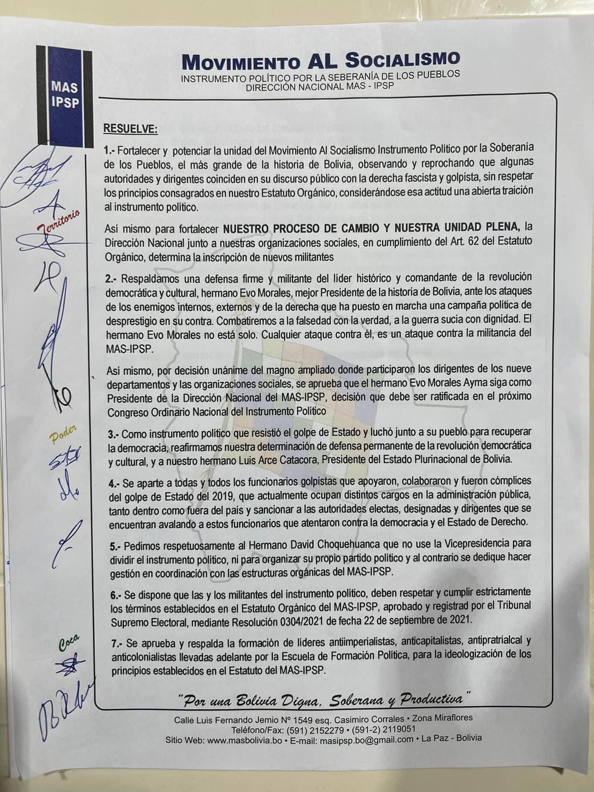 El Ampliado del MAS-IPSP resuelve respaldar cómo único líder a Evo Morales y piden a Choquehuanca que no utilicé la Vicepresidencia para dividir