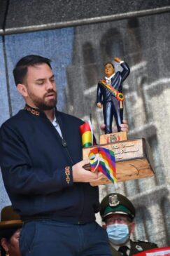 Martes 30 de agosto 2022 .- Durante la feria Consume lo Nuestro de los centros penitenciarios del país y lanzamiento de la venta de productos elaborados por los privados de libertad en la aplicación Consume lo Nuestro, los directores departamentales de Régimen Penitenciario de #SantaCruz, #LaPaz, #Oruro y #Cochabamba, realizaron la entrega de presentes a nombre de la población privada de libertad al ministro de Gobierno, Eduardo Del Castillo Del Carpio, asimismo los artesanos del Centro de Rehabilitación #Palmasola, hicieron llegar un tallado del presidente del Estado Plurinacional de Bolivia Lucho Arce, en agradecimiento al trabajo que se viene realizando desde el Estado en apoyo a la población penitenciaria y su reinsercion social.
