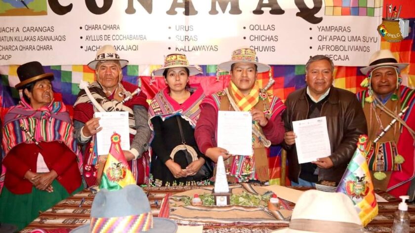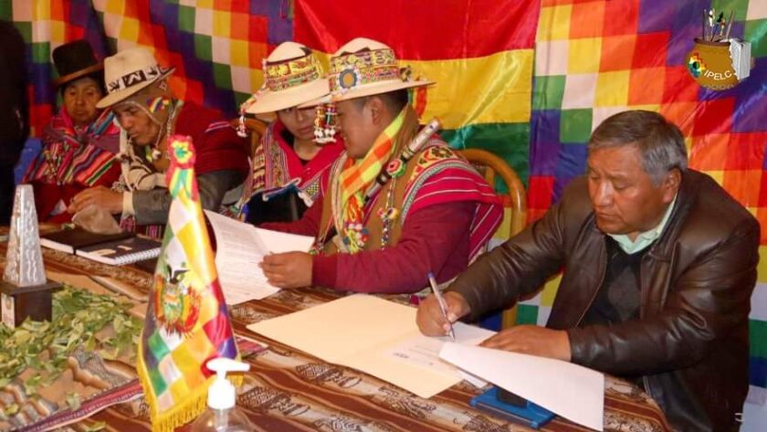 El presente convenio de cooperación, es suscrito por Walter Gutiérrez Mena, Director General Ejecutivo del Instituto Plurinacional de Estudio de Lenguas y Culturas – IPELC y el Jiliri Apu Mallku Ramiro Jorge Cucho, del Consejo Nacional de Ayllus y Markas del Qullasuyu CONAMAQ-Bolivia.