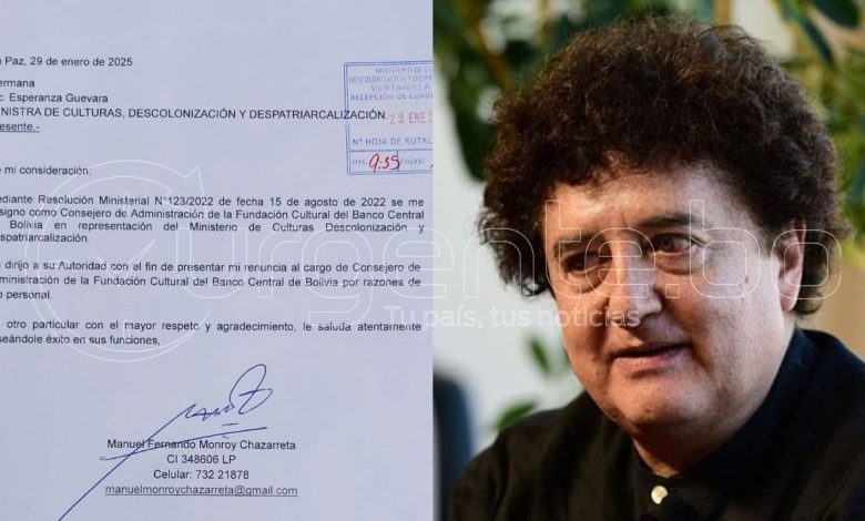 La carta de renuncia escueta que envía Chazarreta a la Ministra de Cultura, indica que renuncia al cargo de consejero del Banco Central de Bolivia , por motivos personales .