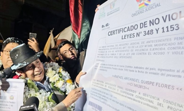 El “ tata “ Quispe como se lo conoce apareció en su inscripción de su candidatura con un certificado de antecedentes tamaño familiar donde se pone en relieve que el ahora postulante tendría algún impedimento para participar en las Subnacionales.