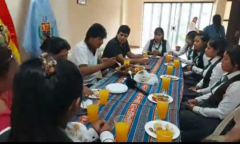 03 de octubre 2024.- Declarado en la clandestinidad en el Chapare, reaparece el expresidente Evo Morales acusado del delito de estupro y trata de personas , juntó q un grupo de jóvenes estudiantes compartiendo un almuerzo .