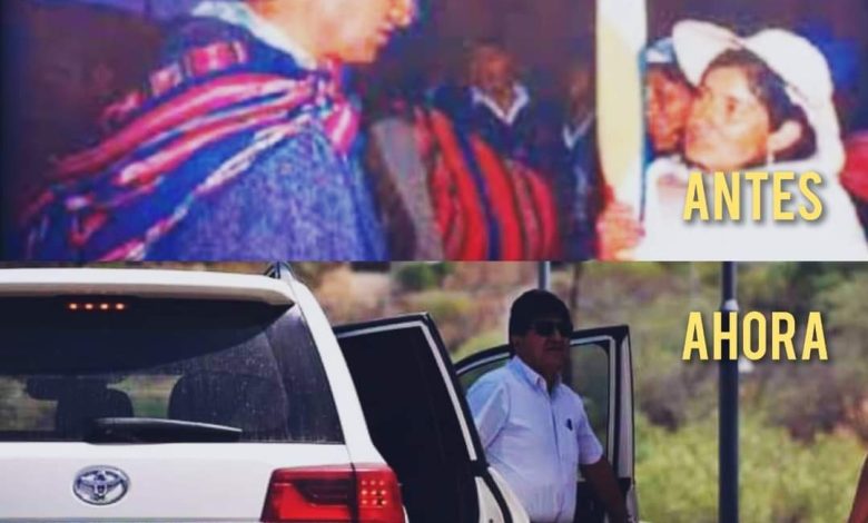 01 de octubre 2024 .- Una imagen reveladora del expresidente Evo Morales, de los años 90 marchando por la vida y la tierra , cargado de un Aguayo, con ojotas ,andando con el pueblo hoy marcha con lentes Rayban, zapatos de 500 dolares y con una vagoneta de 90 mil dólares.