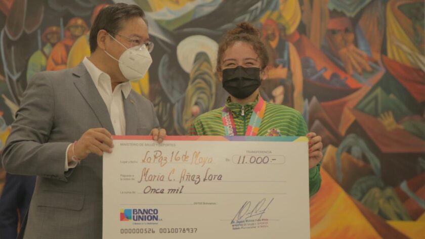 La deportista Sandoval medalla de oro en la disciplina de Kárate, categoría 53 kilogramos a tiempo de agradecer por el reconocimiento económico brindado por el Gobierno nacional, pidió al presidente Luis Arce que continúe con el apoyo a los deportistas bolivianos para que se tengan más lauros para el país.