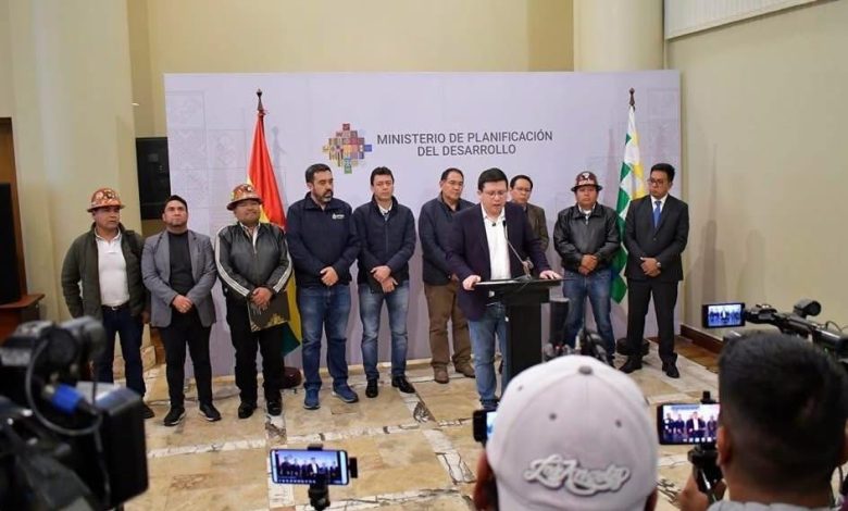 Los ministros de Planificación, Sergio Cusicanqui, y de Medio Ambiente, Álvaro Ruiz, junto a otras autoridades, participaron en esta jornada del inicio de negociaciones en esta mesa de trabajo que tuvo como máximo representantes de los trabajadores al dirigente de la COB, Juan Carlos Huarachi.
