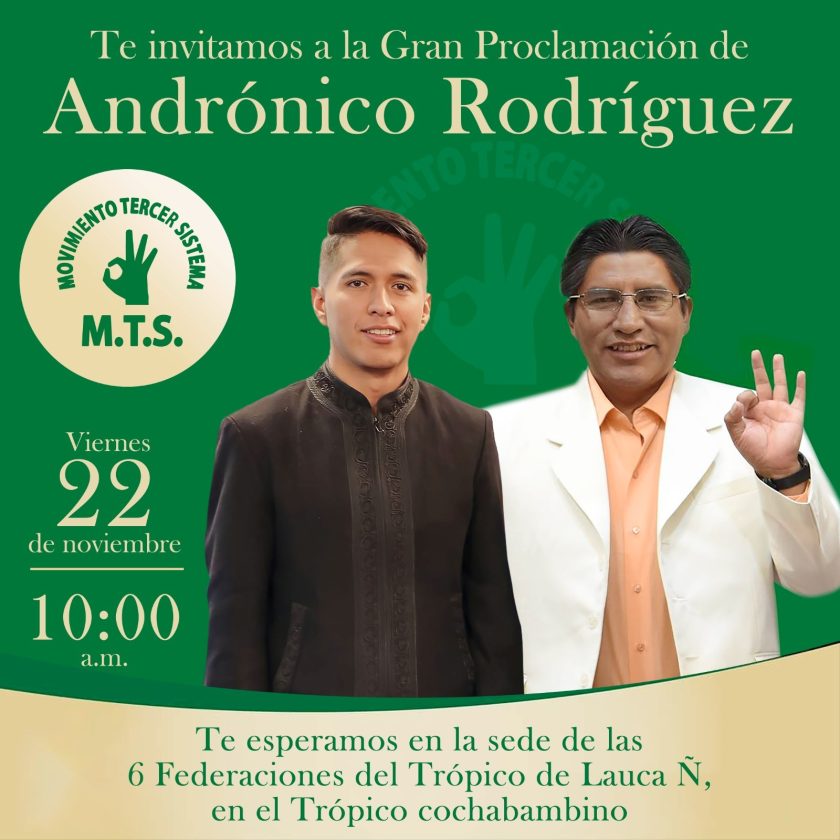 21 de noviembre 2024.- El Dirigente de la CSUTCB, Guery García, dijo qué los » evistas» se reunirán este viernes a la cabeza de Evo Morales, pará analizar sus posibles alianzas políticas con el Movimiento Tercer Sistema, de Felix Patzi, incluso hay convocatoria para proclamanciones, trás qué perdieron el instrumento.