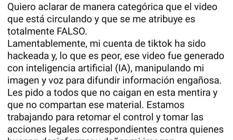 “ Quiero aclarar de manera categórica que el video que está circulando y que se me atribuye es totalmente falso “, mencionó Lara.