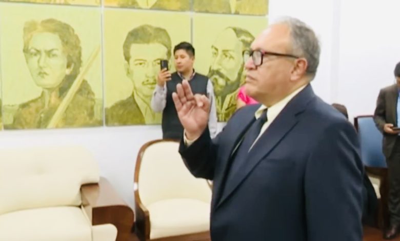 lunes, 17 de noviembre, 2025 .- El presidente Rodrigo Paz, posesiona a Marco Antonio Calderón de la Barca Quintanilla, como nuevo Ministro de Minería.