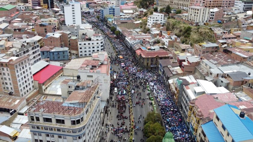 Multitudinaria movilización de más de tres millones de personas en apoyo al Gobierno de Arce Catacora y Choquehuanca en el Día del Estado Plurinacional.