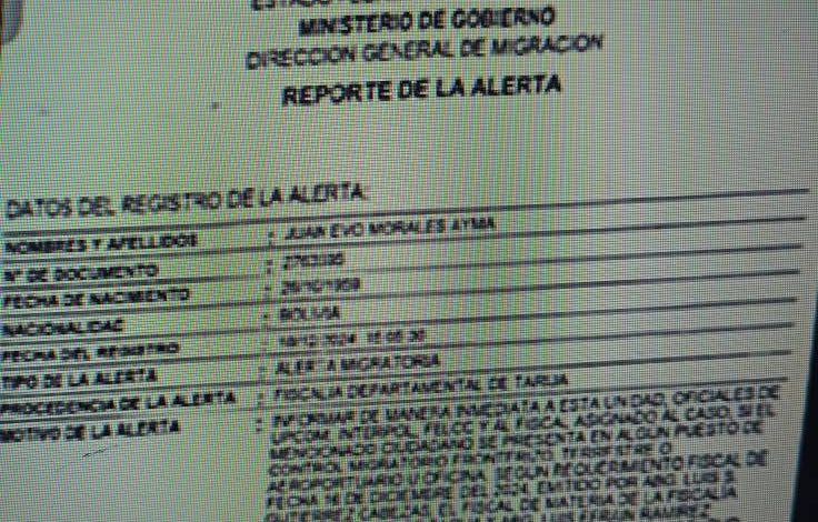 Bazualdo indicó que si Morales intenta salir del país, será detenido.
