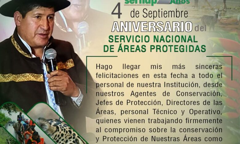 Domingo 4 de septiembre 2022.-25 Años de Aniversario del Servicio Nacional de Áreas Protegidas #SERNAP, dependiente del Ministerio de Medio Ambiente y Agua #MMyA, celebra con grandes desafíos en la conservación y Protección de las Áreas como patrimonio natural de nuestro Estado Plurinacional, su Director Ejecutivo Teodoro Mamani Ibarra, se dirige al personal de esta Institución para seguir trabajando con el compromiso firme de conseguir los objetivos trazados rumbo al bicentenario de nuestro país.