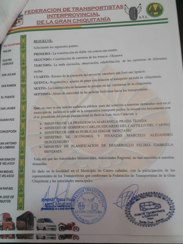 Transportistas de la Chiquitania anuncian bloqueo de carreteras responsabilizan al Ministro Edgar Montaño, por no atender sus demandas .