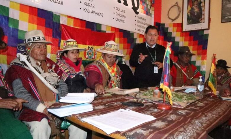 Lunes 23 de mayo 20220. El Consejo de Gobierno Nacional de Ayllus y Markas del Qullasuyu #CONAMAQ-BOLIVIA, a la cabeza del Jiliri Apu Mallku Tata Ramiro Jorge Cucho sostuvo una reunión con el Hno Eulogio Núñez Director de INRA Nacional, en esa reunión, se acordó coordinar los avances de saneamiento de Tierras Cumunutarias de Origen TCO, así mismo procesos conflictivos a nivel nacional, para hacer seguimiento como Autoridades Originarias y agilizar el proceso de saneamiento.